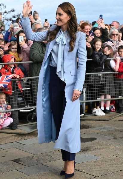 Vương phi Anh Kate Middleton ưu tiên quần cạp cao ống suông nhẹ, váy áo dệt kim trong ngày se lạnh.