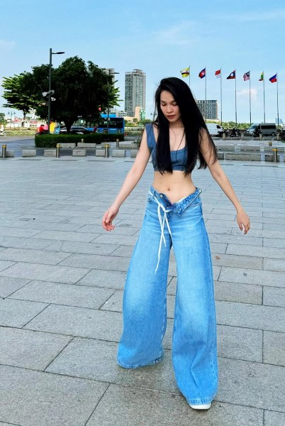 Ca sĩ Hiền Thục, 43 tuổi, thường xuyên diện crop top, bra top, quần jeans và shorts khi dạo phố, du lịch.