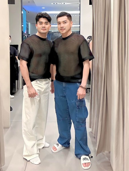 Tủ đồ của diễn viên còn có tank top, sweatshirts, các bộ đồ thể thao. Anh thường mang sneakers hoặc dép lê, crocs hơn là giày Tây. Kể cả khi mặc suit trong các sự kiện trang trọng, anh cũng ưu tiên sneakers. Quang Minh không chọn quần ống đứng, ôm dáng mà thường mua quần ống rộng - kiểu quần được gen Z yêu thích.