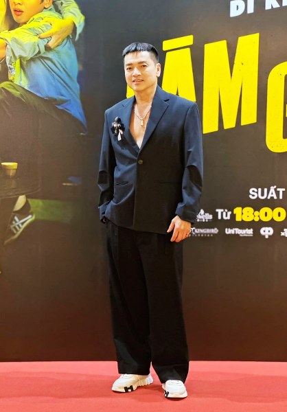 Một trong những cách giúp anh tạo ra vẻ ngoài trẻ trung là mặc vest không có áo bên trong. Anh từng diện kiểu này tại buổi chiếu Làm giàu với ma tại TPHCM, tô điểm bằng cài áo Dior và giày Hermes.