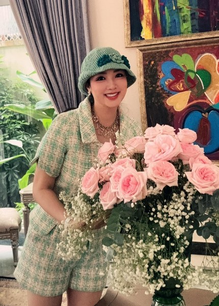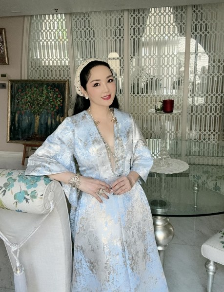 Cô ghi điểm với đầm lụa, bộ trang sức đính đá kết hợp ngọc trai khi đi dự sinh nhật bạn. Người đẹp "ăn gian" tuổi với mốt khăn trùm đầu rộ lên hai năm nay.