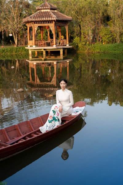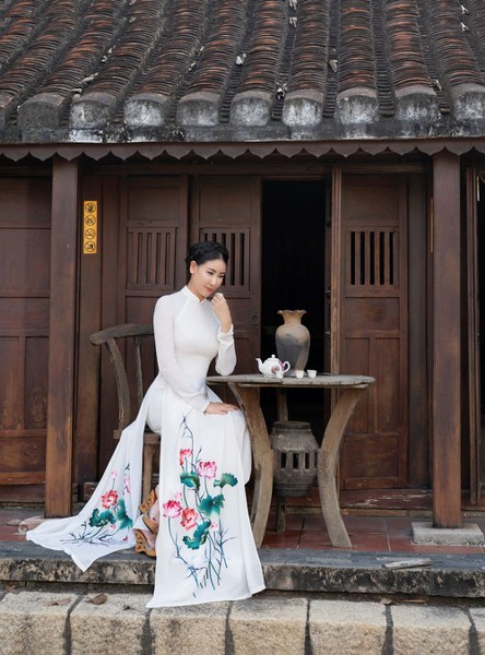 Vẻ đẹp mặn mà cùng nét duyên dáng của Hà Kiều Anh góp phần tạo nên thành công cho bộ ảnh giới thiệu sưu tập ‘Hương đồng nội’ của Thuận Việt.