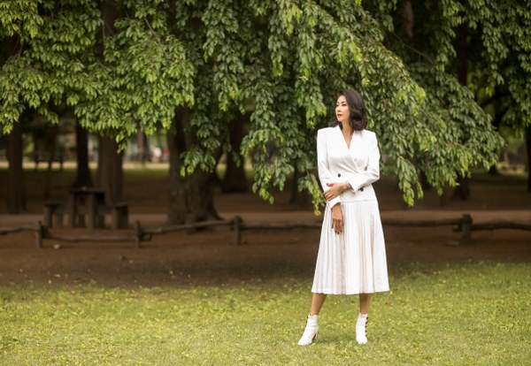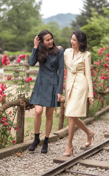Hình ảnh mặn mà của Hoa Hậu Hà Kiều Anh bên cạnh Dương Mỹ Linh trong trang phục công sở.