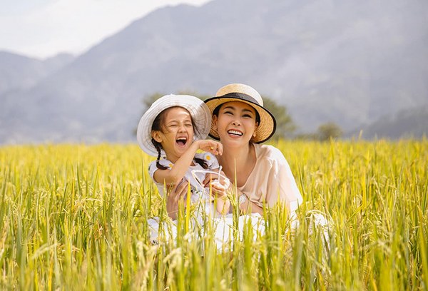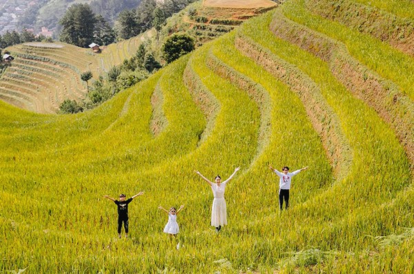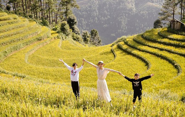 Hoa hậu Hà Kiều Anh vừa tranh thủ đưa các con đi chơi, ngắm cảnh đẹp thiên nhiên vùng Tây Bắc vào cuối mùa lúa chín.