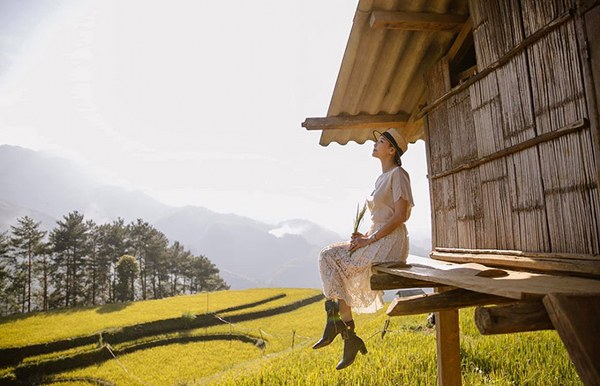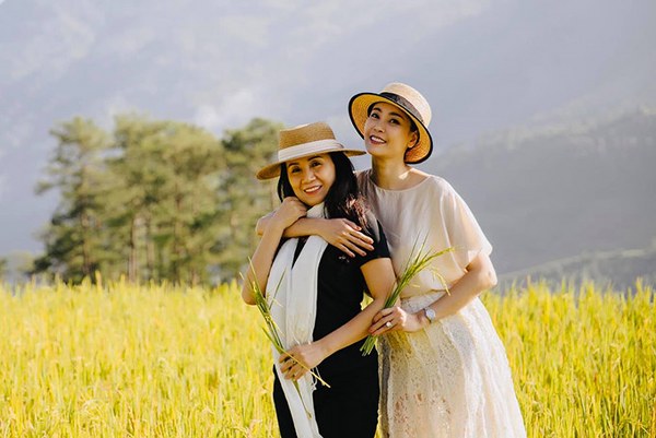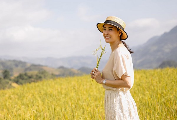 Hoa hậu Việt Nam 1992 cảm thấy may mắn vì kịp tới đây vào cuối mùa lúa chín để ngắm những thửa ruộng bậc thang vào vụ thu hoạch và chụp được nhiều tấm ảnh đẹp làm kỷ niệm.