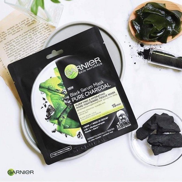Mặt nạ rong biển & than tre thanh lọc da – Garnier Charcoal & Black Algae Serum Mask