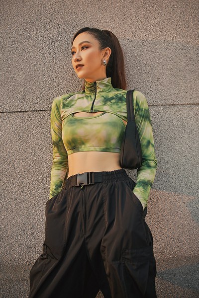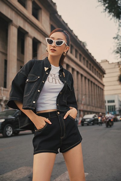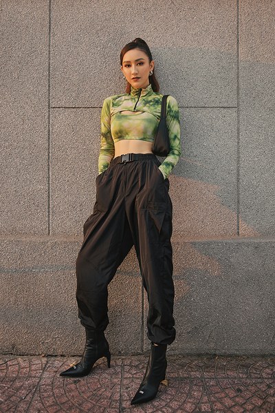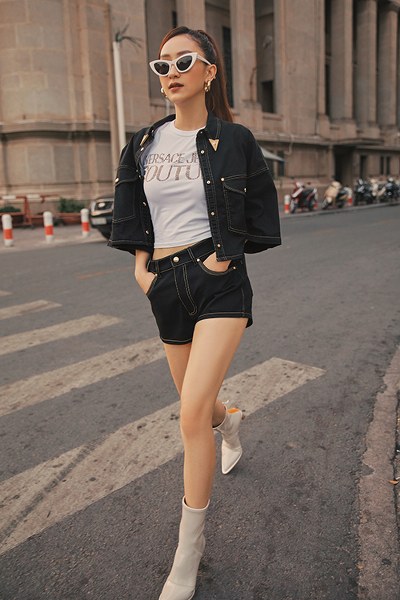 Áo hở eo, áo crop-top, short và chân váy ngắn được Hà Thu chọn để phối đồ dạo phố.