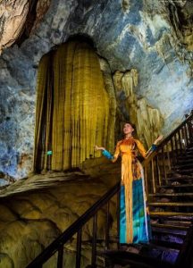 Nhật Dũng gửi gắm đến lễ hội áo dài những gì tinh tuý nhất của vùng đất Quảng Bình, nhằm quảng bá và gửi thông điệp cùng chung tay bảo vệ di sản: Hang Sơn Đoong, Hang Én, Suối Nước Mooc, Động Phong Nha, Động Thiên Đường
