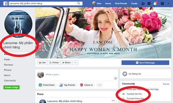 Fanpage Lancôme giả mạo: không có tick xanh và lượng người theo dõi thấp – là một trong những dấu hiệu nhận biết Fanpage giả mạo thương hiệu