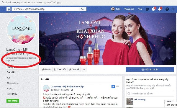 Trong tuần vừa qua, hàng loạt trang Fanpage và website giả mạo Lancôme Việt Nam xuất hiện tràn lan trên Facebook, Instagram và quảng cáo rầm rộ bán mỹ phẩm Lancôme