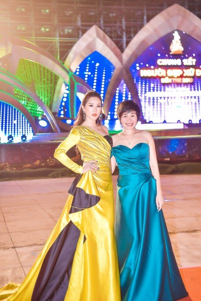 Bà Tuyết Nhung – Phó Ban tổ chức và NTK Lâm Lâm, người thực hiện trang phục áo bà ba và đầm dạ hội của cuộc thi