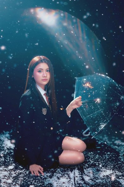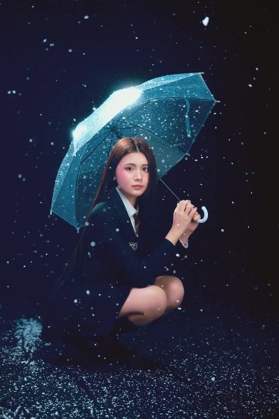 Khung hình trở nên mộng mơ, lãng mạn hơn với hiệu ứng tuyết rơi nhẹ cùng đạo cụ pháo bông, chiếc ô trong suốt.