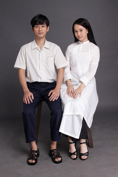 Trúc Anh (trái) và Trần Nghĩa thử tạo hình cho nhân vật phim "Mắt biếc"