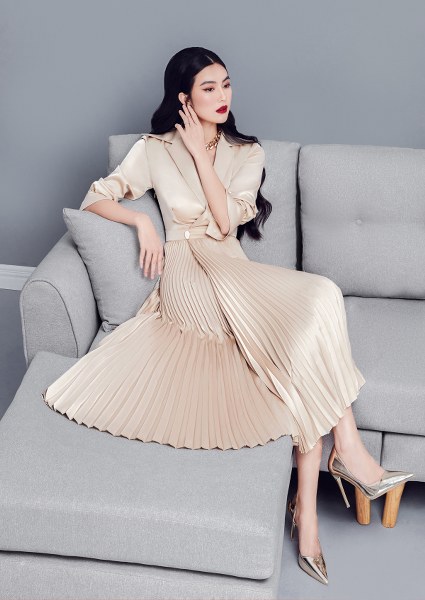 Những mẫu váy phom dáng cổ điển giúp vẻ đẹp đậm chất phương Đông của Helly Tống thêm quyến rũ.