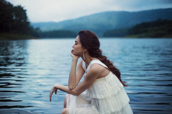Dù đang mang thai đôi, ca sĩ Hồ Ngọc Hà không ngần ngại lội xuống hồ để thực hiện loạt ảnh mới cho album \"Love Songs 2020\".