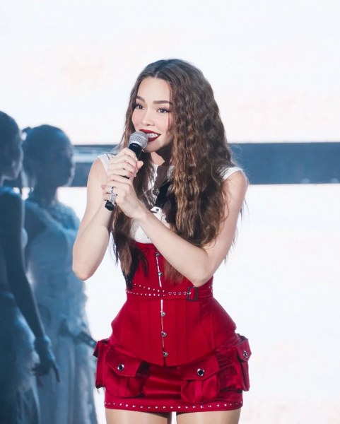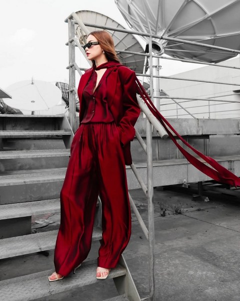 Mới đây, ca sĩ chia sẻ ảnh tham gia một chương trình. Hồ Ngọc Hà chọn thiết kế của Lâm Gia Khang gồm blazer dáng dài và sơ mi lụa đỏ, phối trang sức và đồng hồ đắt đỏ.