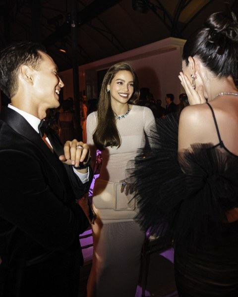 Kim Lý gây ấn tượng bởi vẻ điển trai, lịch lãm trong bộ vest đen. Cặp đôi bày tỏ niềm vinh dự khi góp mặt tại sự kiện, gặp gỡ nhiều nghệ sĩ nổi tiếng và chiêm ngưỡng những bộ trang sức đắt đỏ.