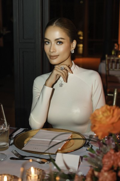 Người đẹp lựa chọn bộ trang sức cánh hoa kim cương, giá trị lên đến gần 2 tỷ đồng. Như Vân là người mẫu duy nhất của Việt Nam xuất hiện trong sự kiện lần này cùng Super Mentor Hồ Ngọc Hà.