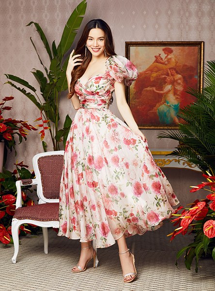Ca sĩ Hồ Ngọc Hà tự tin khoe dáng với bộ sưu tập mới do cô làm đại sứ thương hiệu khi mang thai đôi ở tuần thứ 12.