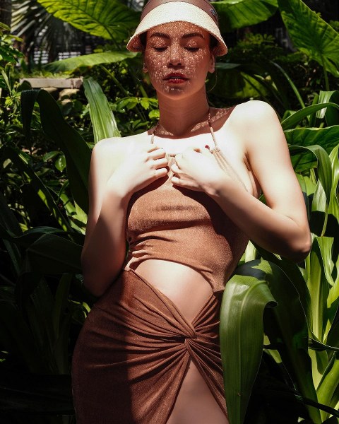 Hồ Ngọc Hà thường chọn những mẫu đầm, bikini màu nude, nâu, đen có nhiều điểm nhấn cut-out.