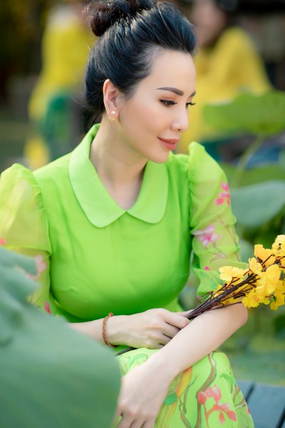 Trong bộ ảnh lần này, Châu Ngọc Bích chọn 4 mẫu áo dài đậm màu xuân của NTK Ngô Nhật Huy để thể hiện nét đẹp truyền thống và tinh thần vui vẻ chuẩn bị đón năm Canh Tý của hoa hậu.