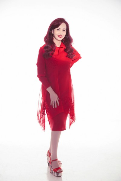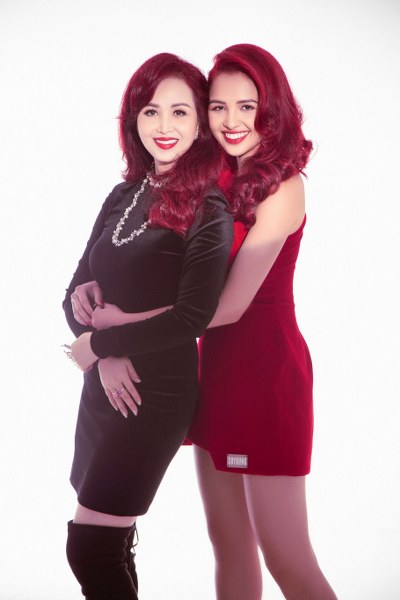 Hoa hậu Việt Nam 1990 chọn đồ đen chụp ảnh cùng hai con gái diện váy đỏ nổi bật. Cả 3 mẹ con cùng mặc đồ của nhà thiết kế Hòa Nguyễn.