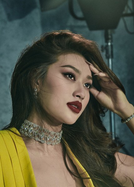 Phong cách chụp ảnh mang đậm chất điện ảnh giúp Thiên Ân phô diễn được những đường nét gương mặt sắc sảo cùng thần thái kiêu sa, sang chảnh.