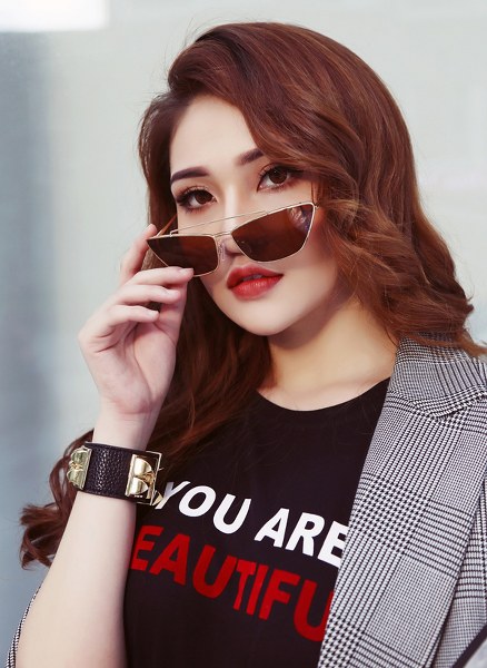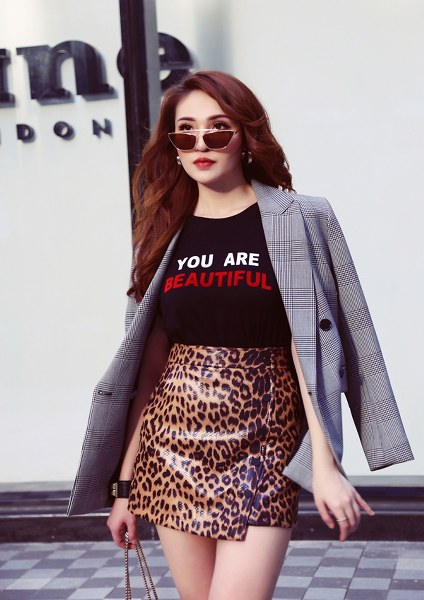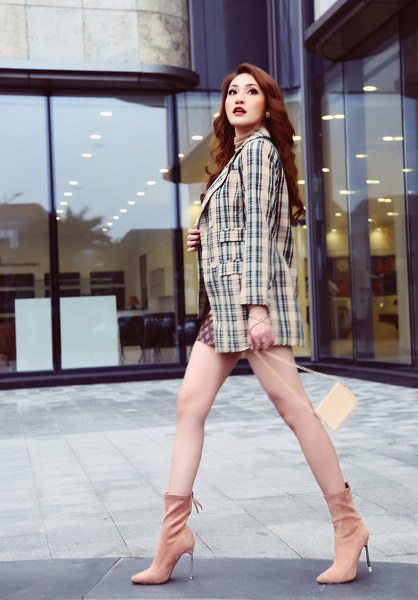 Cựu thành viên nhóm nhạc TVM chuộng những thiết kế thanh lịch, giúp tôn vóc dáng khi dạo phố Sài Gòn.