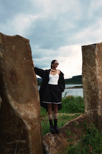 Sơ mi xẻ tay và chân váy xếp bèo mang hơi hướng Y2K phù hợp những cô gái thích phá cách.