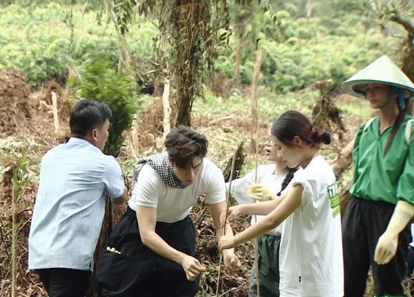 Trong khi đó, với sự hỗ trợ của ca sĩ Vũ Thịnh, đội Xanh dương tới khu vườn ươm để mua 2.000 cây giống phù hợp.