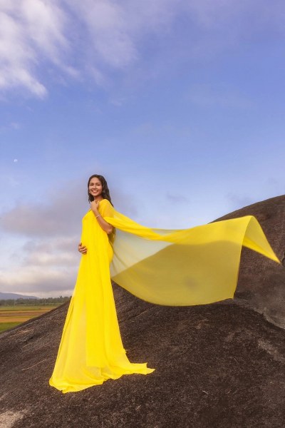 Hoa hậu H'Hen Niê diện váy lụa sắc màu, áo thun dáng rộng dạo chơi khi mang thai con đầu lòng.