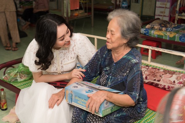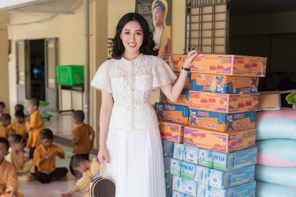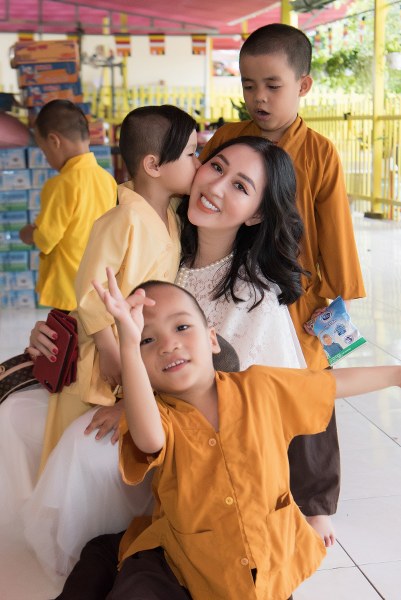 Vừa qua, Hoa hậu Huỳnh Thúy Anh đã cùng bạn bè đến chùa Từ Hạnh ở Quận Bình Tân, TP.HCM để trao các phần quà cho trẻ em mồ côi và cụ già neo đơn sống tại đây. Dù ăn mặc giản dị nhưng nàng hậu vẫn vô cùng xinh đẹp, rạng rỡ.