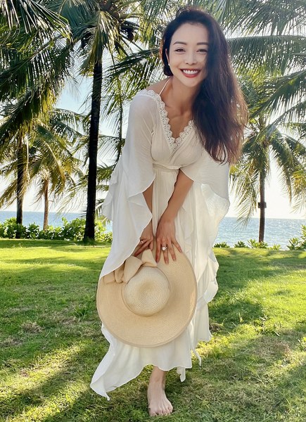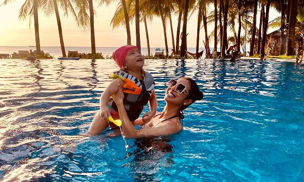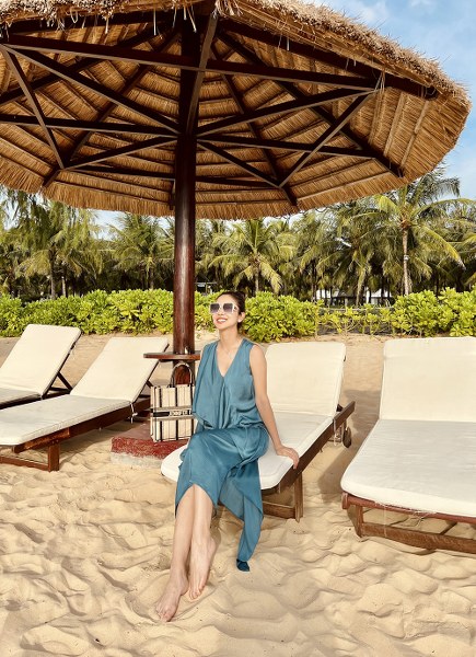 Hoa hậu Jennifer Phạm khoe lưng trần trước biển qua ống kính của ông xã - doanh nhân Đức Hải - khi nghỉ dưỡng tại Phú Quốc.