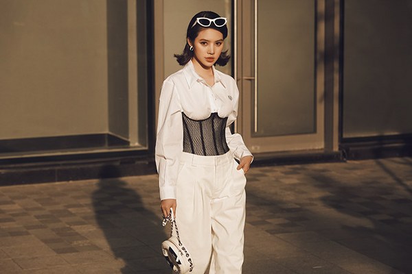 Người đẹp gây chú ý với kiểu áo corset bó eo và tôn vòng một khi ra phố