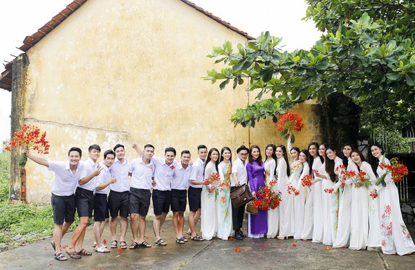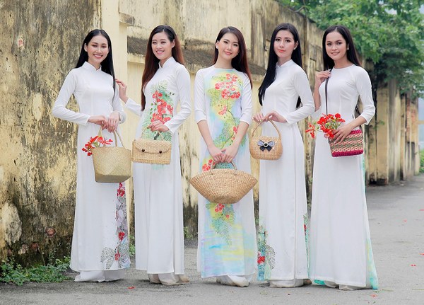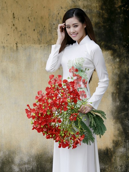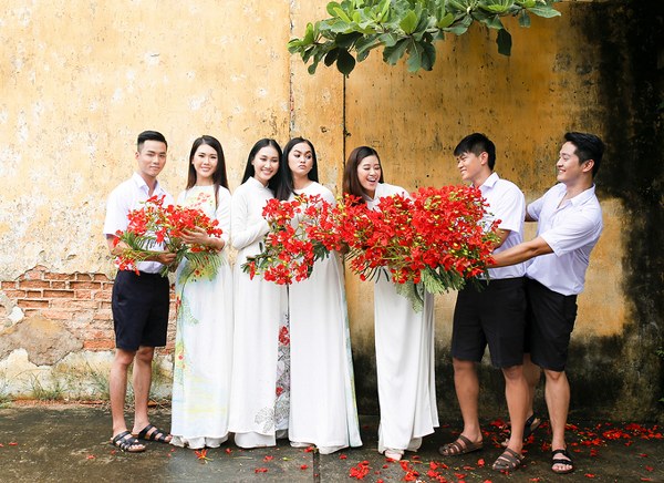 Hoa hậu Hoàn vũ Việt Nam 2019 Khánh Vân diện áo dài cùng bạn bè thực hiện bộ ảnh phong cách học trò hồn nhiên, trong sáng.