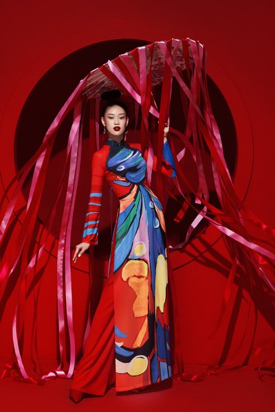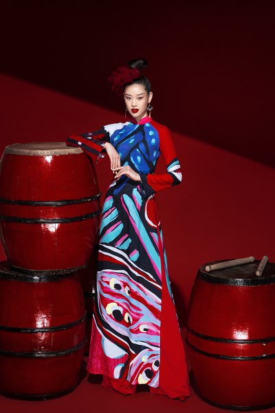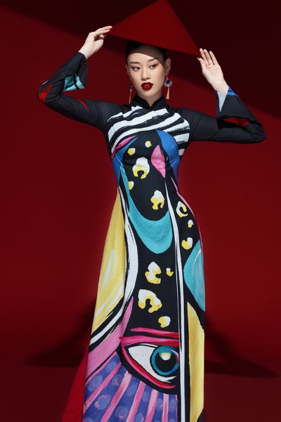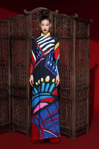 Bộ trang phục vẫn trung thành với phom áo truyền thống được cắt tinh tế, dáng chuẩn ôm trọn hình thể người mặc nhưng vẫn toát lên nét thanh tao.