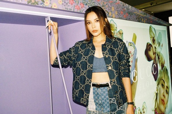 Áo nửa gang tay chất liệu thô được Kỳ Duyên phối cùng "cây" hàng hiệu.