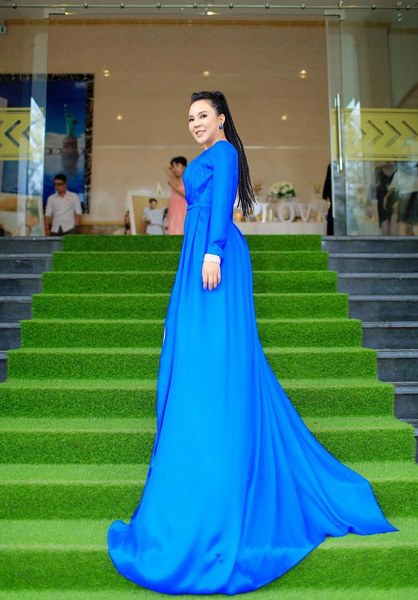 Hoa hậu Doanh nhân Quốc tế 2018 khoe nét sang trọng, quý phái khi diện thiết kế đầm dạ hội từ chất liệu lụa bay bổng của NTK Oanh Phan.