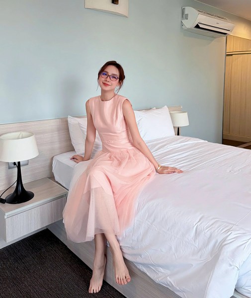 Với đôi chân dài 1,23m, Bảo Ngọc thường diện những bộ đầm cắt xẻ để tôn ưu điểm hình thể. Loạt ảnh Hoa hậu diện váy xuyên thấu bên bờ biển được đăng tải hôm 30/12/2025 hút hàng chục ngàn lượt tương tác từ khán giả.