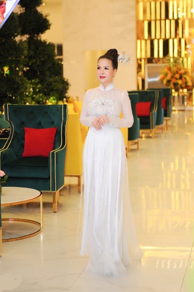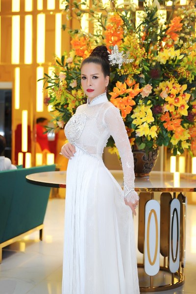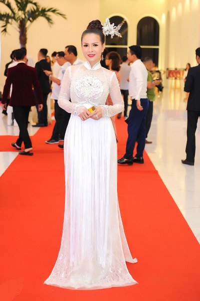 Diện trang phục áo dài, xuất hiện cùng mái tóc búi cao, Hoa hậu Lê Thanh Thúy khoe nhan sắc rạng rỡ và xinh đẹp thu hút mọi ánh nhìn tại sự kiện.