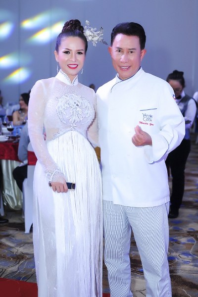 Diện áo dài trắng, tóc búi cao cùng trâm cài kiều diễm, Hoa hậu Lê Thanh Thúy gặp gỡ siêu đầu bếp nổi tiếng Yan Can Cook trong một sự kiện tại Tp.HCM.