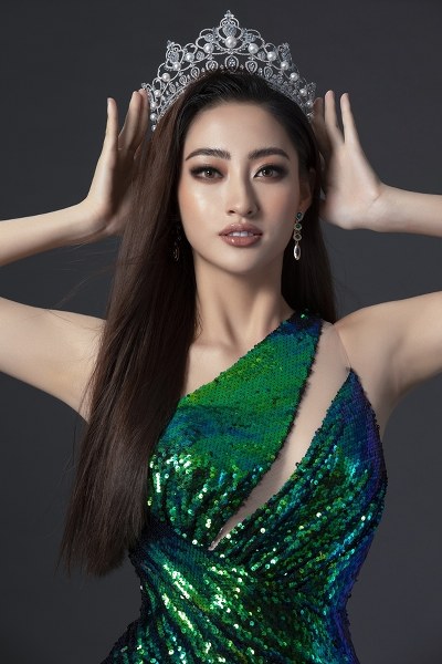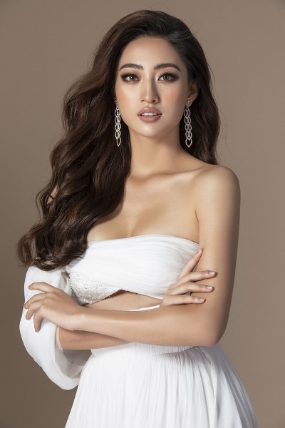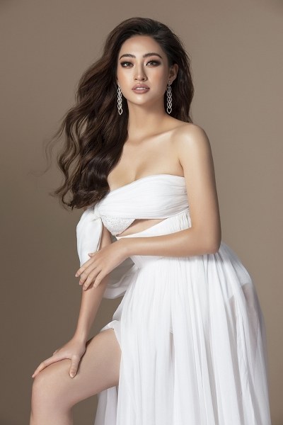 Trong bộ ảnh gửi đến ban tổ chức Miss World, Hoa hậu Lương Thùy Linh chọn váy cắt xẻ tôn lợi thế hình thể.