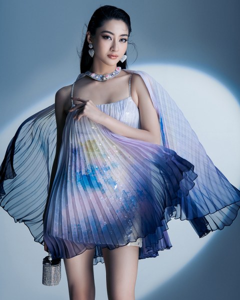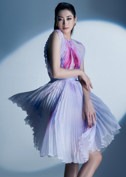 Hoa hậu Lương Thùy Linh sử dụng loạt váy mùa xuân của NTK Đỗ Long để tôn vẻ đẹp hình thể.