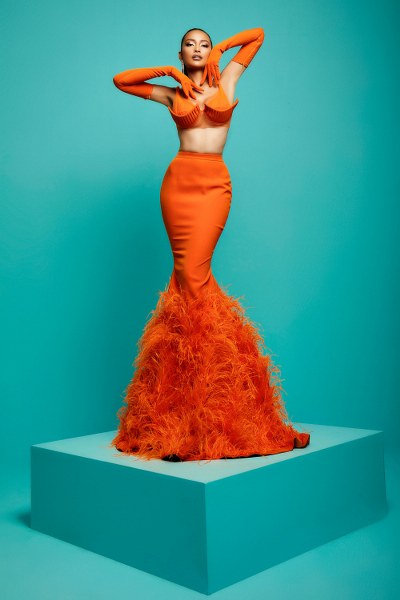 Trang phục do Lê Ngọc Lâm thiết kế riêng cho Ngọc Châu, dựa trên định hướng từ giám đốc sáng tạo Cindy Nguyễn. NTK muốn mang đến hình ảnh mới lạ, đột phá thay cho phong cách sexy đã quen thuộc của cô.