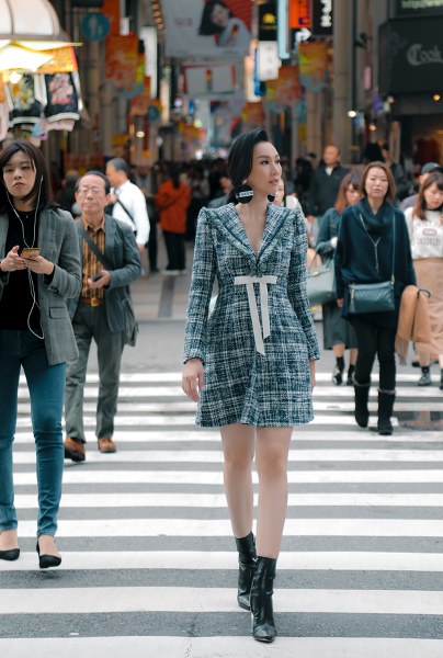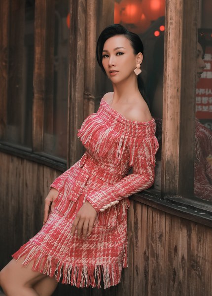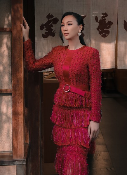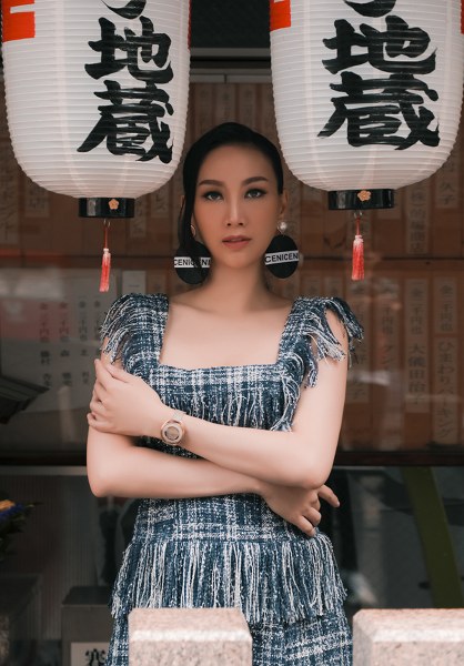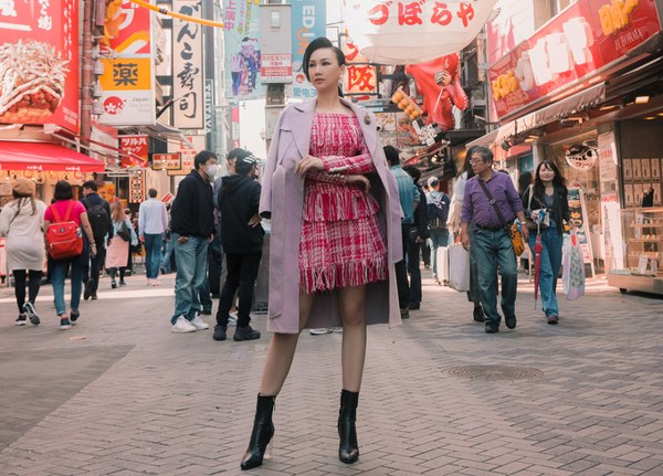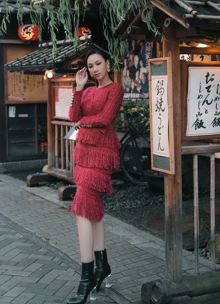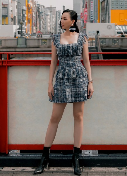 Cựu người mẫu mặc các thiết kế chiết eo, ngắn trên đầu gối trong chuyến du lịch thăm xứ phù tang.