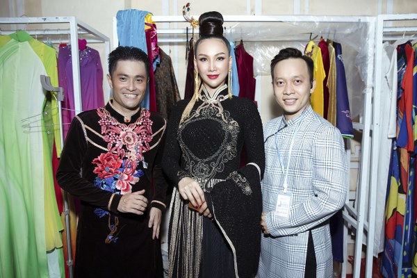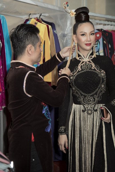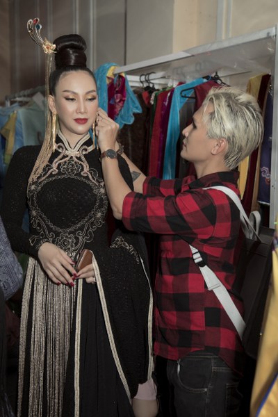 NTK Nhật Dũng chăm chút cho Hoa hậu Paris Vũ trước khi lên sân khấu