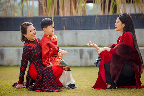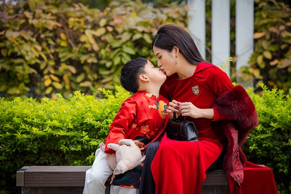 Hoa hậu Đông Nam Á Phan Hoàng Thu hôn môi con trai Bào Ngư trong bộ ảnh gia đình kỷ niệm Tết Nguyên đán Tân Sửu.