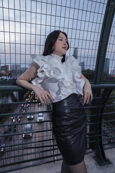 Phương Khánh tự tin thả dáng trong kiểu trang phục sexy, song phối vòng cổ để bớt trống trải.