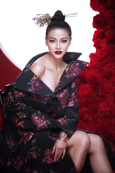 Đặc biệt, cảm hứng Á Đông từ trang phục đến bối cảnh, cách trang điểm, kiểu tóc đều khiến Phương Khánh trở nên xinh đẹp, quyền lực đến không thể rời mắt.