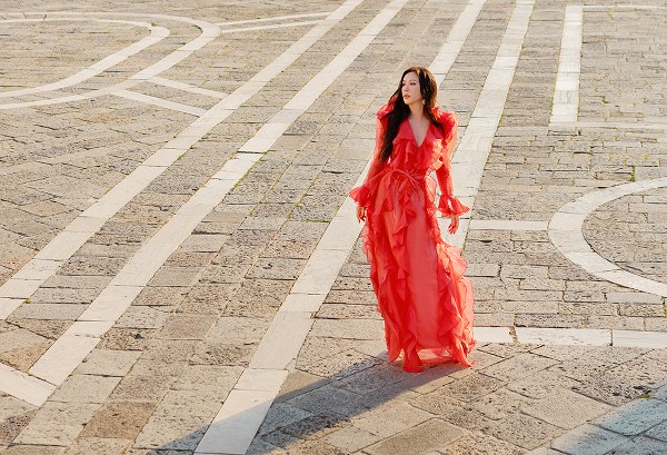 Hoa hậu Thu Hoài khoe sắc vóc quyến rũ tại Venice (Ý).